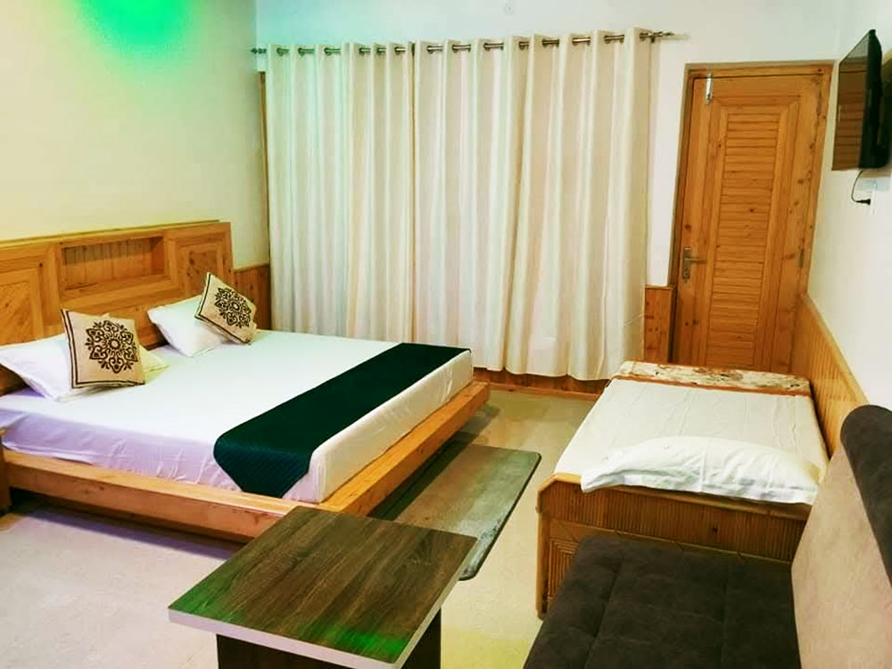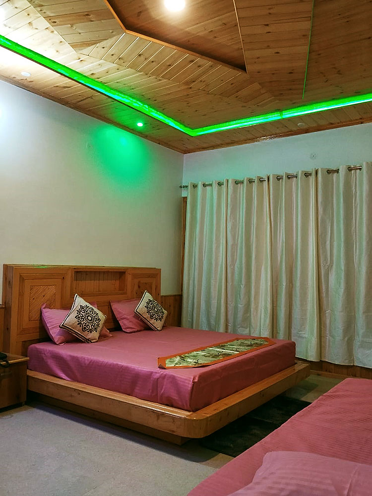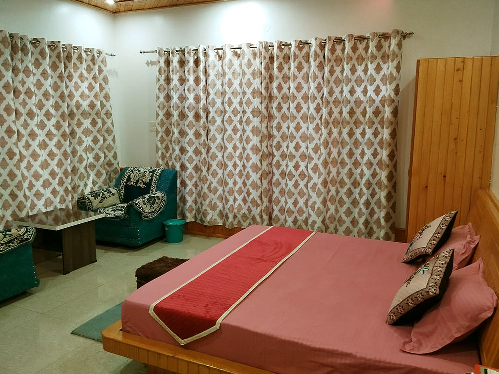 Rooms provide elegant wooden panneling in authentic Himachali architecture style with a comfortable sitting area- a sofa and coffee table, and a writing desk and chair. Closets are in all rooms.